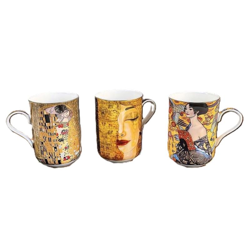 A set of 3 cups from "The Kiss" series. Contains 3 cups, A reproduction of the world-famous painting by the Austrian artist Gustav Klimt.